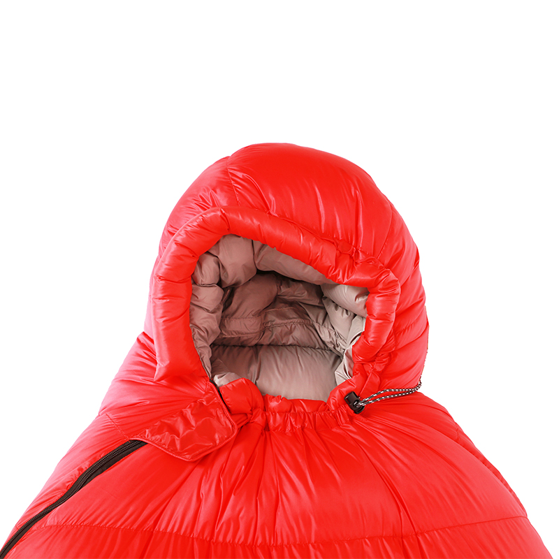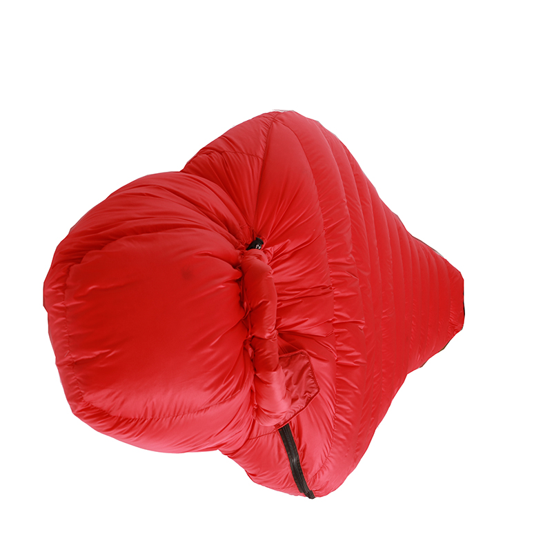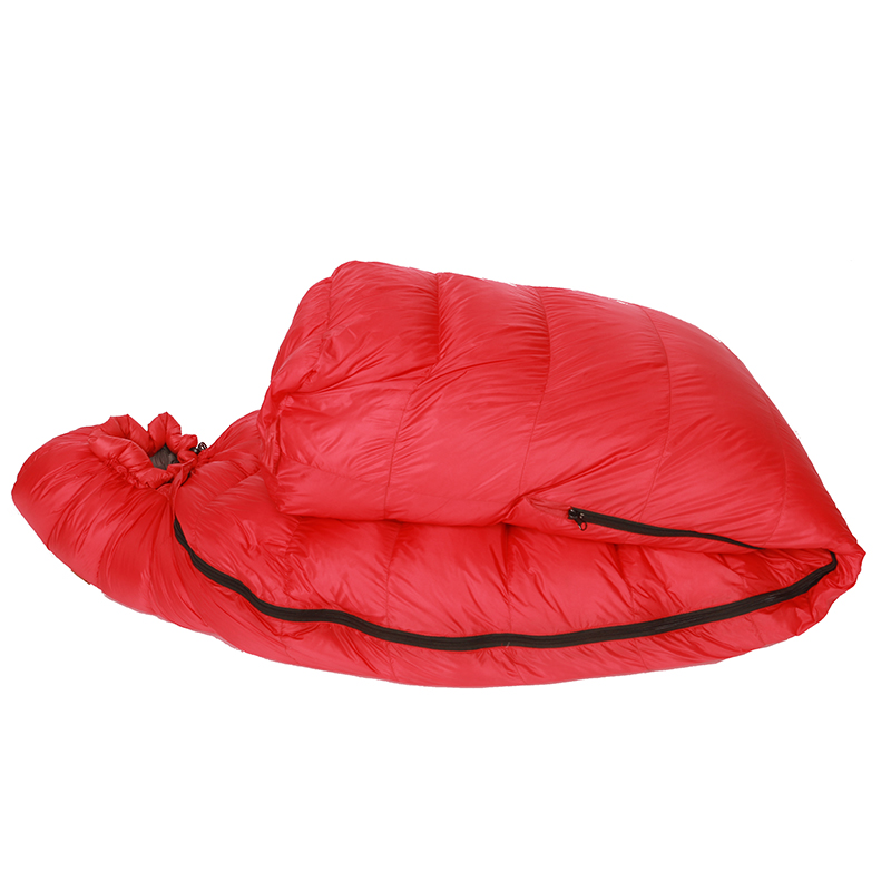 Sleeping bag weight 1400g, The weight of filled down is 800g,Comfort temperature:-9~1 degree centigrade,packing size 25*18cm